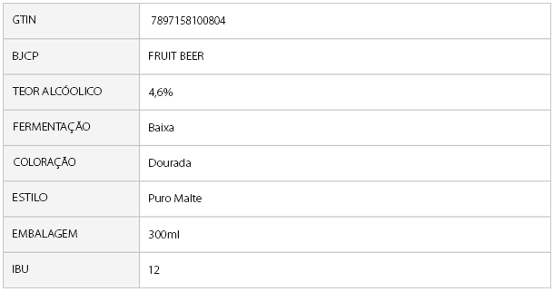Teor alcoólico de 4,6% e leve amargor.